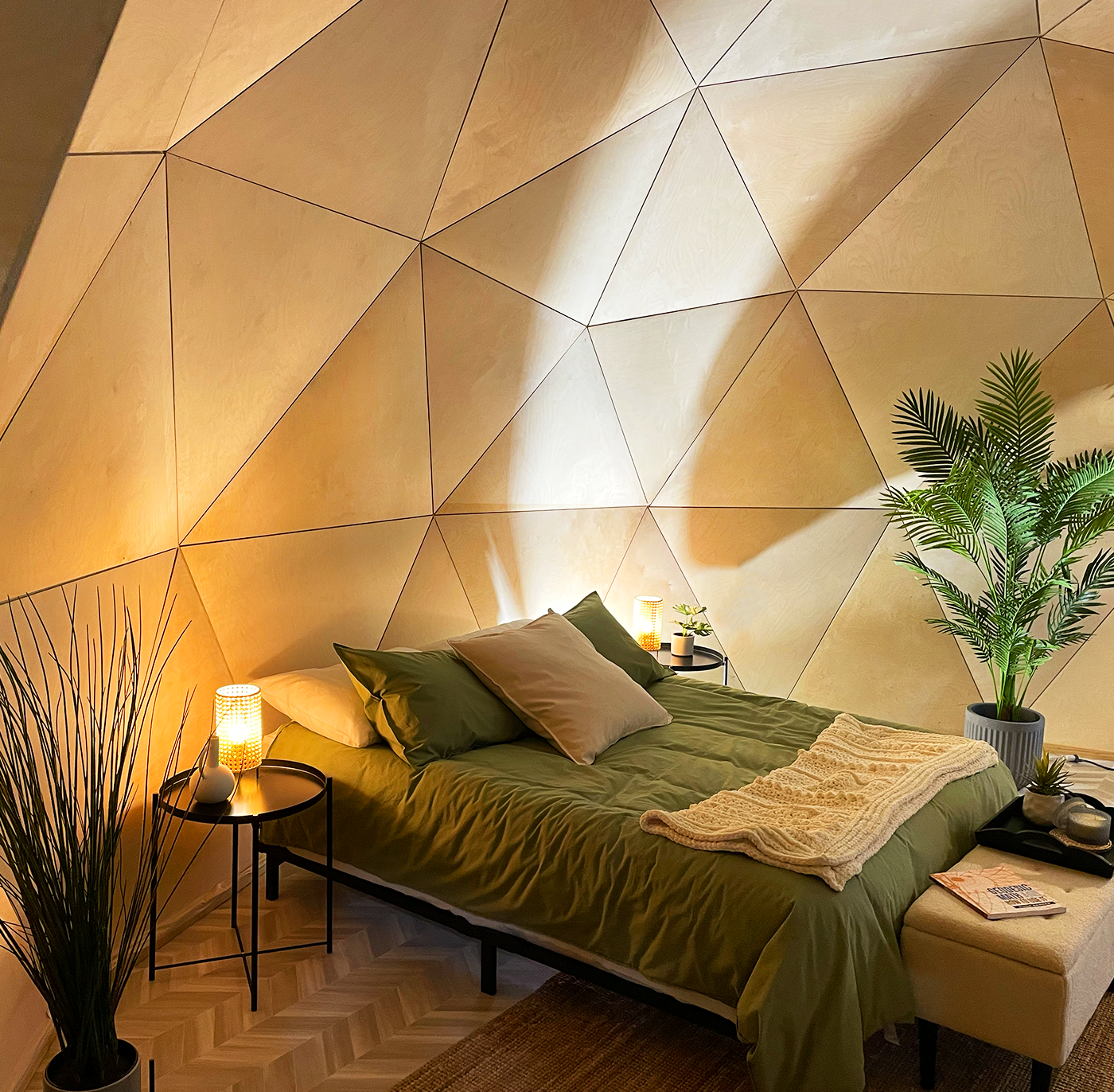 With the room divider in place, you can section off spaces for living, working, or storage, giving your dome a more defined and functional layout, while still retaining the flexibility to personalize the space to suit your vision.
